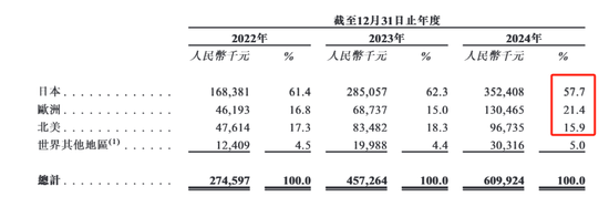 卧安机器人的收入主要来自于海外,2024年,公司来自于日本、欧洲、北美的收入占比分别达到57.7%、21.4%、15.9%。